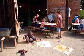 Manuela Preissler (Künstlerin aus Hechingen) und Jörg Schneider (Bodenkundler aus Beuren) führen die Mitmachaktion ‘Farben der Erde’ für Kinder, Jugendliche und